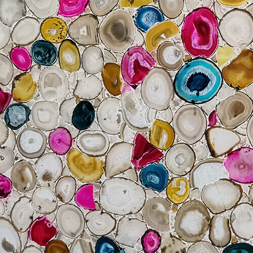 The 5mm veneering process provides greater opportunities for backlighting the stone & enhances the inherent translucency of onyx and quartz to another level.